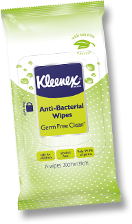 Feel fresh and clean when you’re on the go with Kleenex® Anti-Bacterial Wet Wipes. Small and convenient, and with an effective anti-bacterial solution which kills 99.9% of germs, they are perfect for use both before and after eating for a gentle yet hygienic clean. Safe for children.