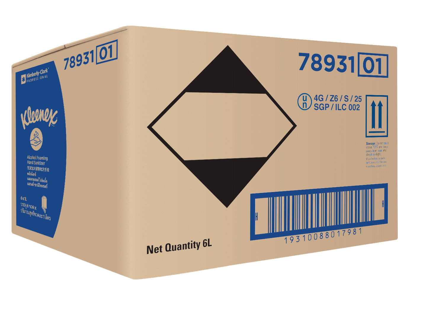 Carton of KLEENEX® Alcohol Foam Hand Sanitiser contains 6 x 1 litre cartridges of sanitiser.