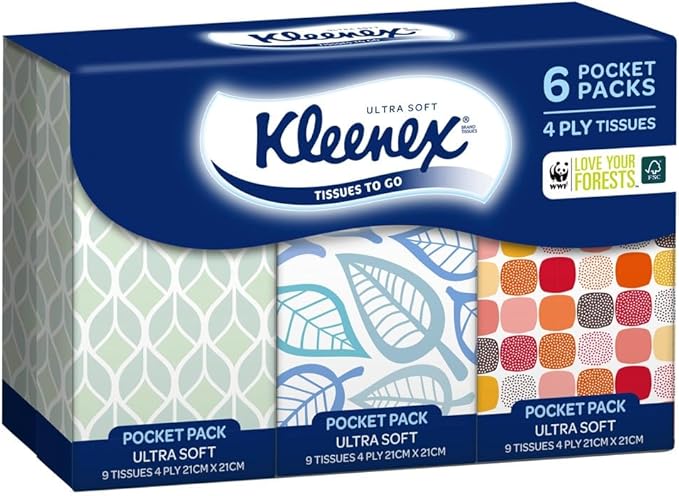 Care for your sniffles and sneezes anytime, anywhere with Kleenex® Everyday Pocket Pack Tissues. Small and convenient, these 4-ply tissues are perfect for when you’re on the go – just pop them in your purse or bag. Kleenex® is FSC® certified, ensuring responsible forest management.